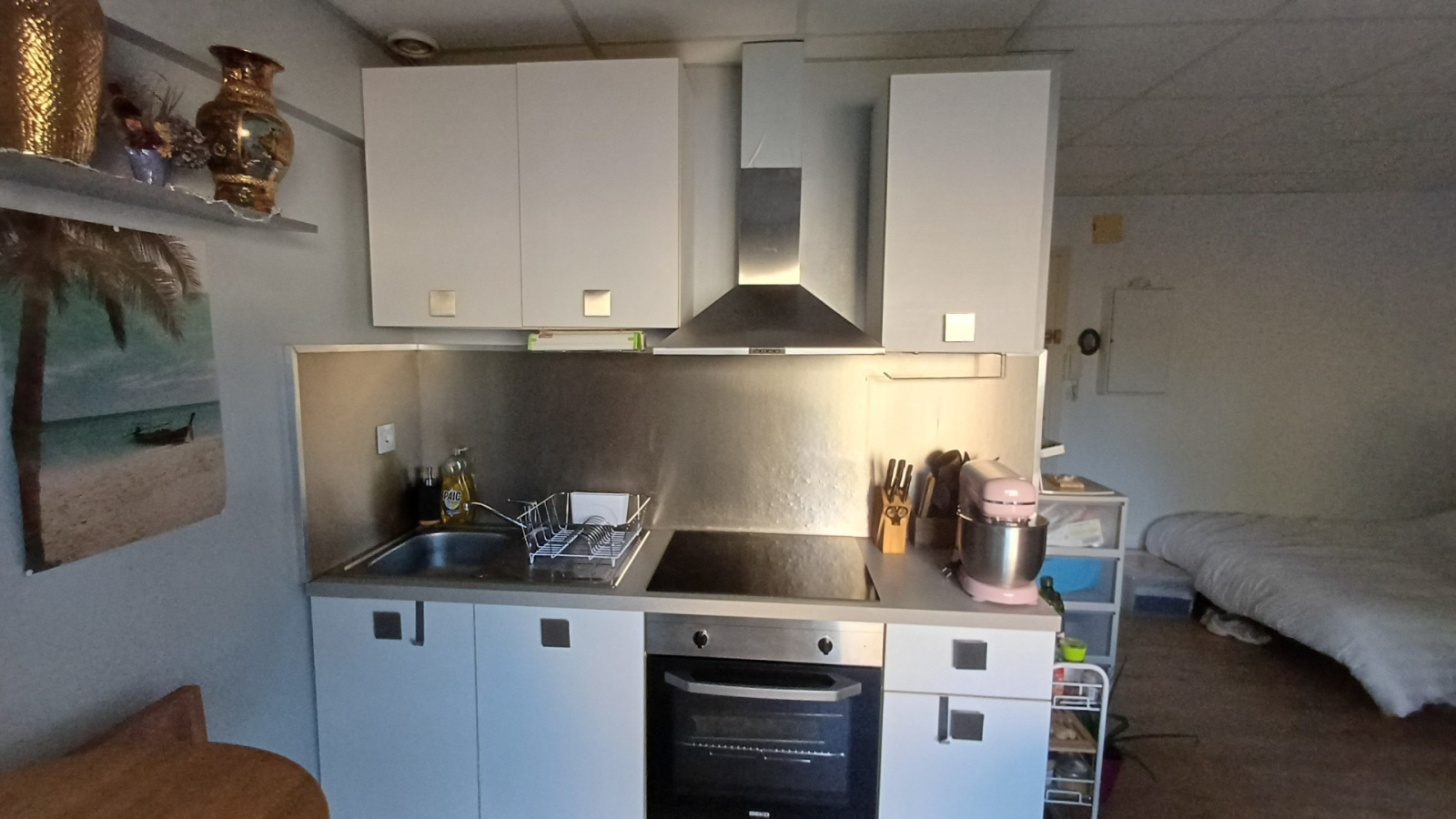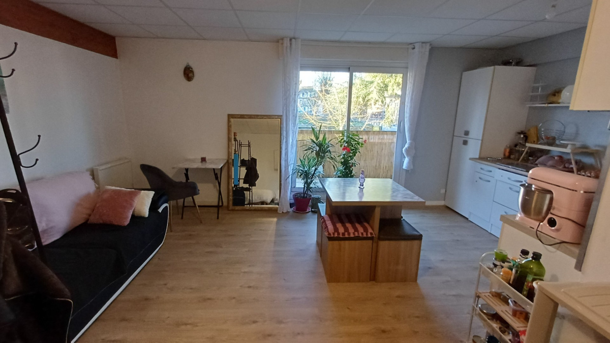 PLOUFRAGAN CENTRE, 1er étage sur 2, appartement T1 lumineux offrant coin cuisine équipée et aménagée ouverte sur la pièce de vie, salle d'eau avec wc. Balcon sud et une place de parking. Libre le 01/02/2026.