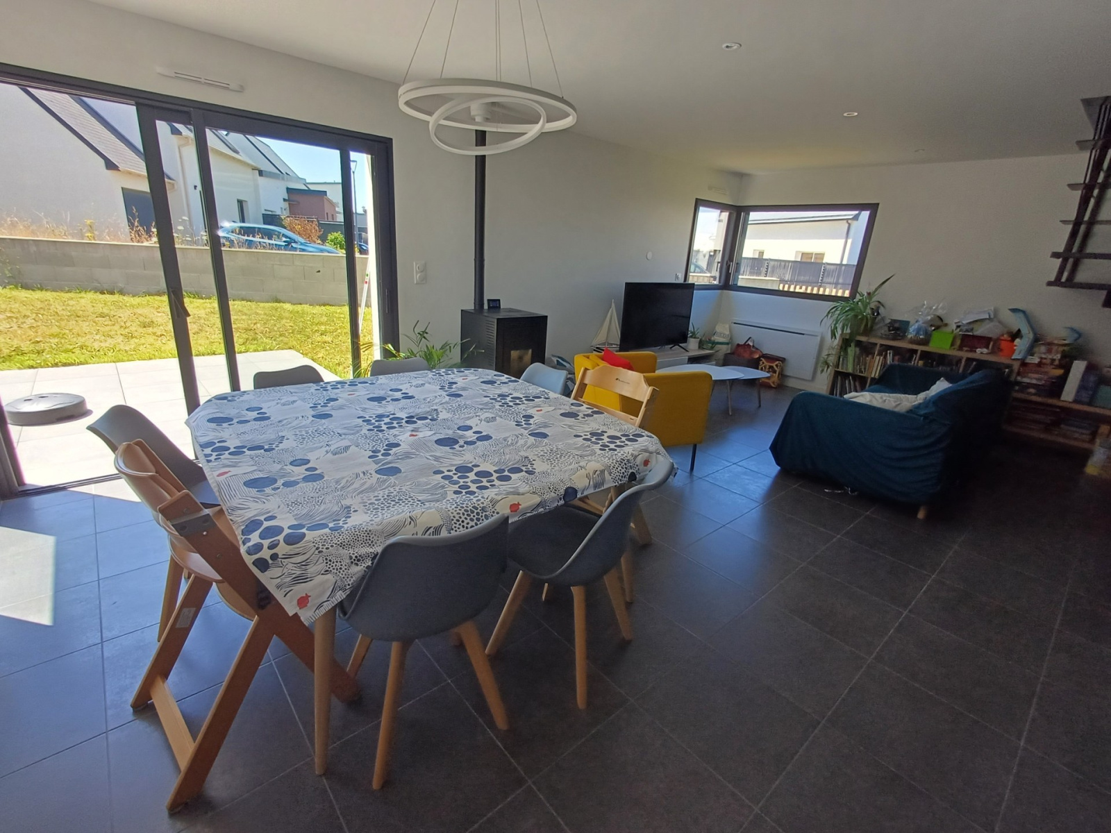 PLOUFRAGAN, proche centre, contemporaine de 2020 entièrement meublée de 89m² offrant entrée avec placards, séjour-salon avec un poêle avec accès terrasse, cuisine équipée et aménagée ouverte, arrière cuisine, wc et garage. A l'étage, 3 belles chambres avec dressing, salle de bains avec baignoire et douche et wc. Garage et jardin. Libre le 20/03/2026. MAISON MEUBLEE.