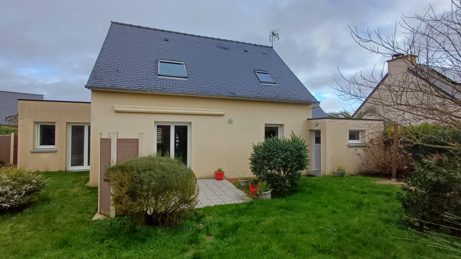 PLOUFRAGAN, jolie contemporaine de 2009 de 103 m² offrant entrée avec placards, cuisine équipée et aménagée ouverte sur séjour-salon, suite parentale avec chambre, placard et salle d'eau attenante, bureau et wc. A l'étage, 3 chambres avec placard, salle d'eau avec wc. Arrière cuisine, garage, abri jardin, terrasse sud et jardin clos sans vis à vis.