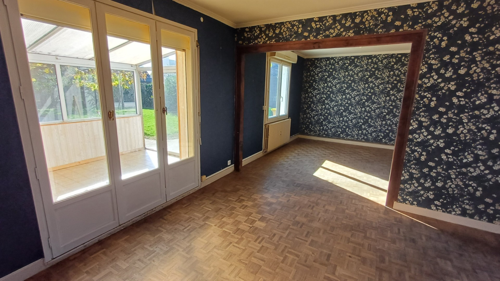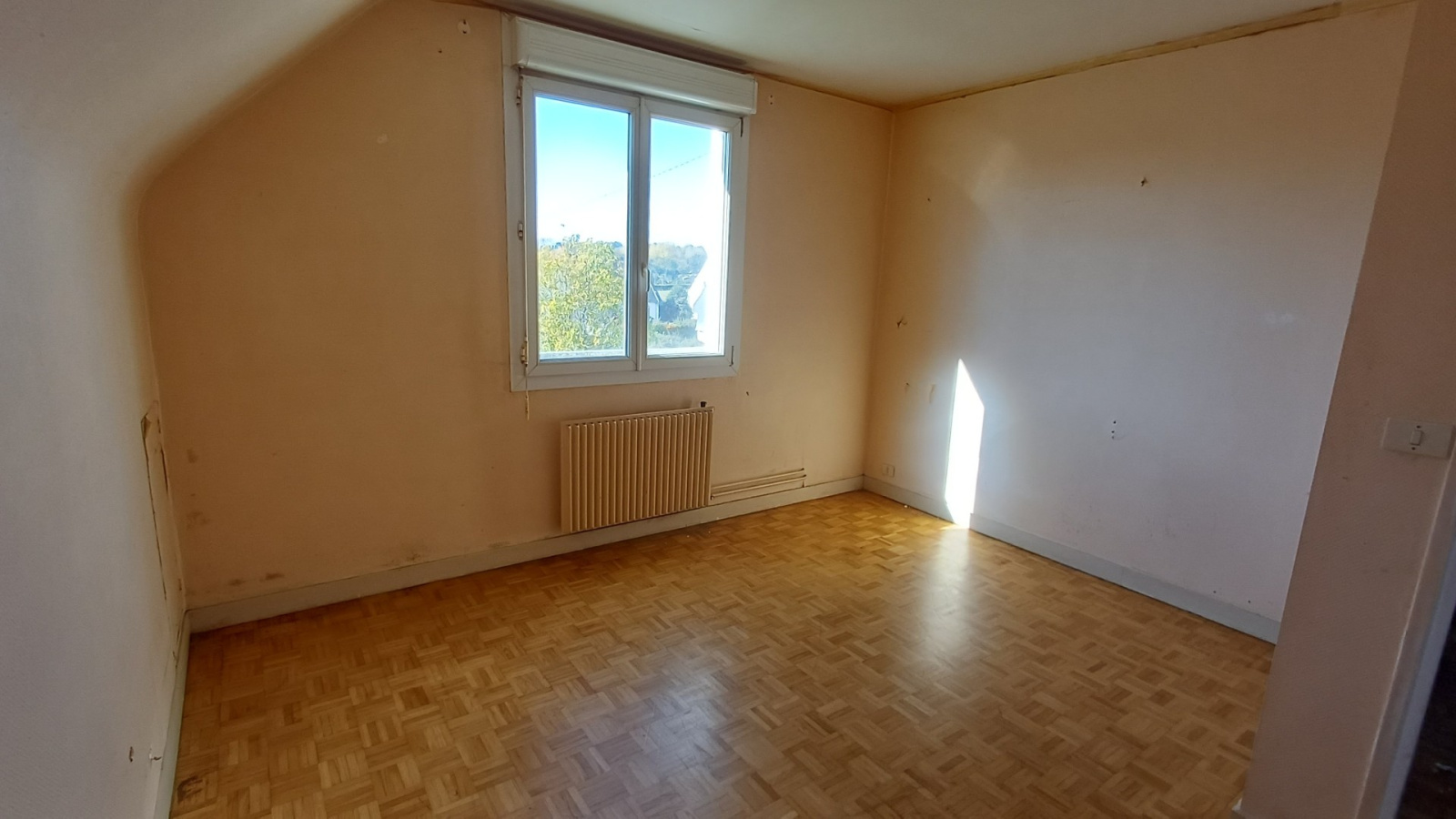 SAINT-BRIEUC, Ville Jouha, exclusivité, maison de 1968 de 94m² à moderniser offrant entrée avec placard, cuisine aménagée ouverte sur le séjour-salon avec accès véranda, wc, possibilité d'une salle d'eau. A l'étage, 3 belles chambres, salle de bains avec wc, placard. Grenier, garage, abri de jardin, le tout sur un joli jardin de 468 m² arboré et clôturé. Chauffage gaz de ville, chaudière de 2023.
