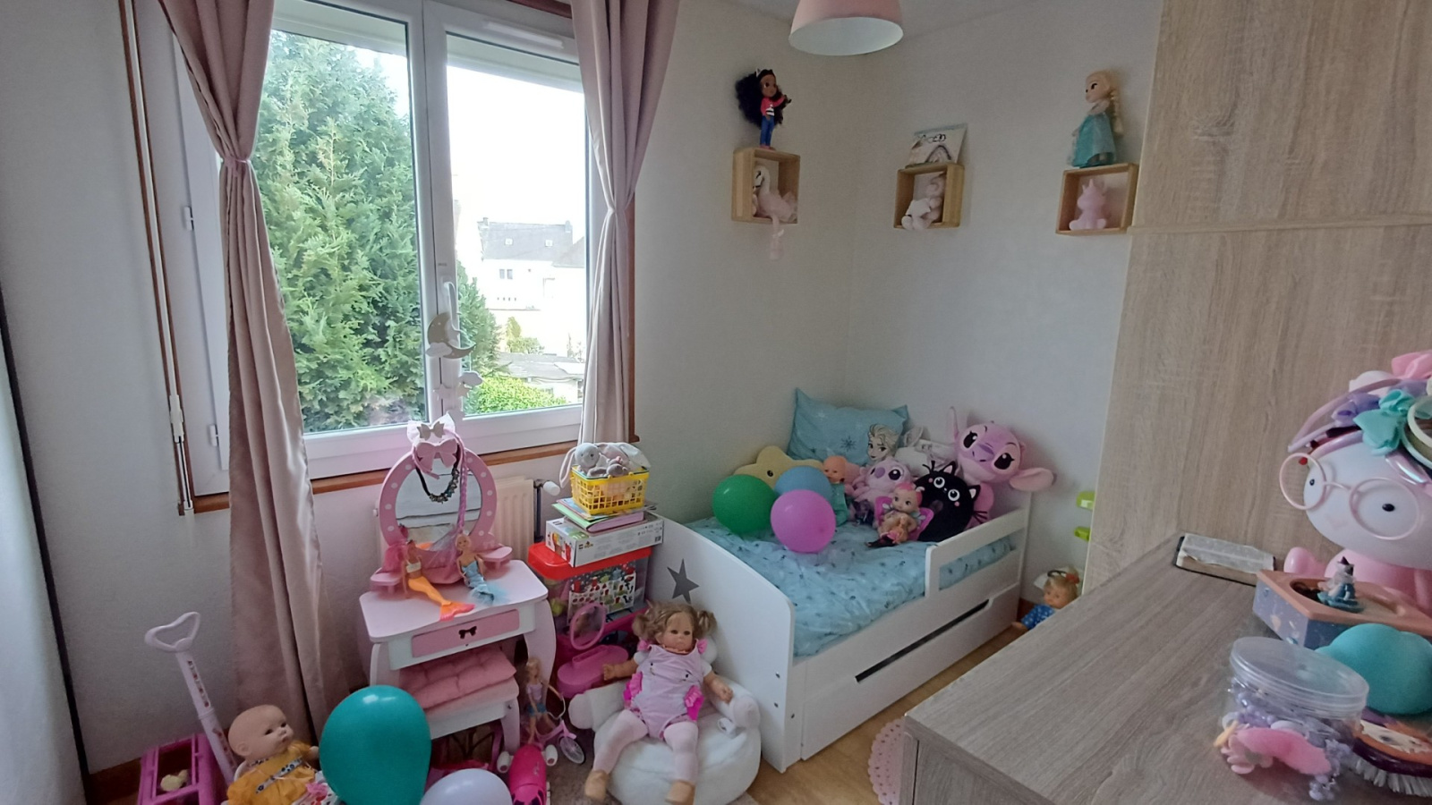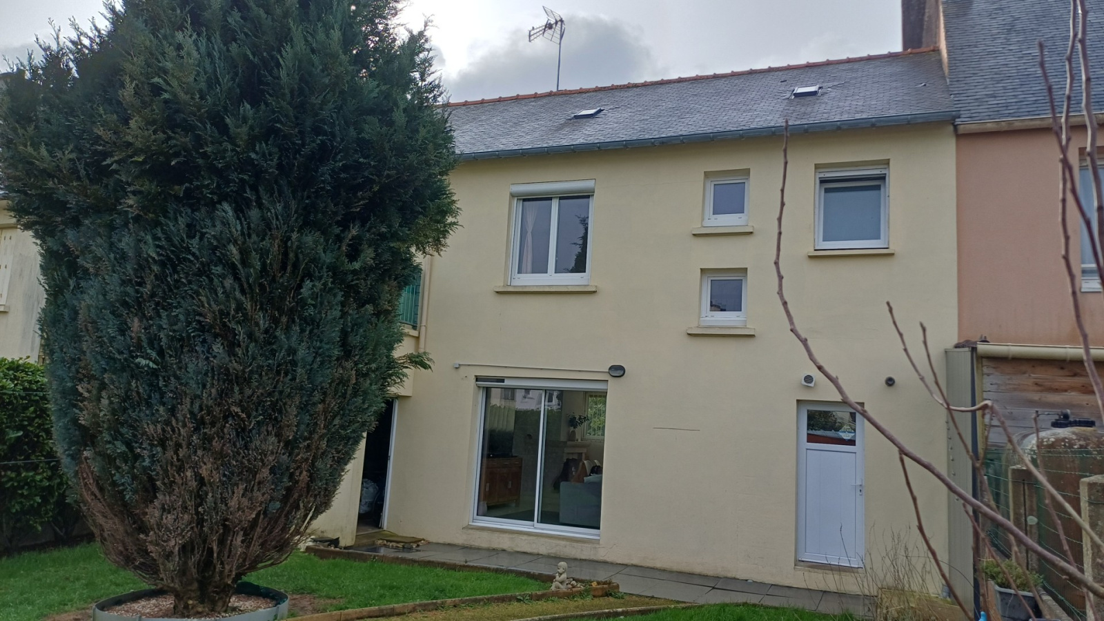 SAINT-BRIEUC, Ville hellio, maison rénovée de 98,50 m² offrant entrée, séjour avec cheminée, cuisine équipée et aménagée, arrière cuisine, wc. A l'étage, 4 chambres, un bureau et salle de bains avec wc. Garage, abri jardin et terrain clos. Environnement calme, proche écoles.